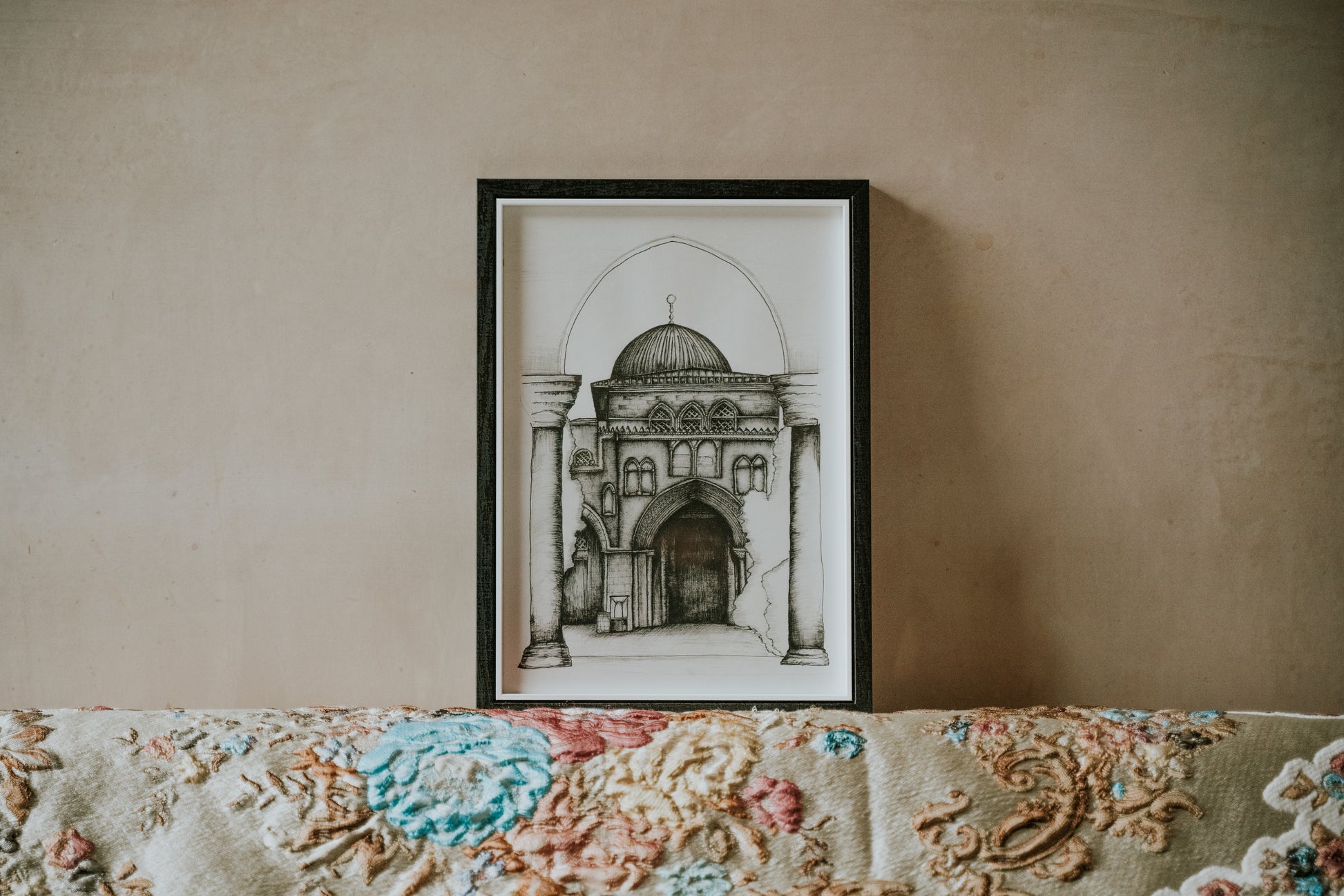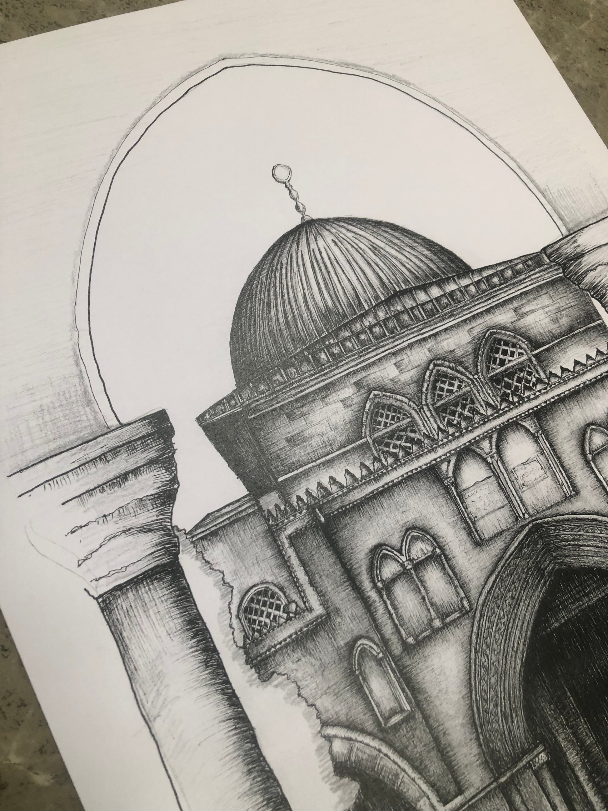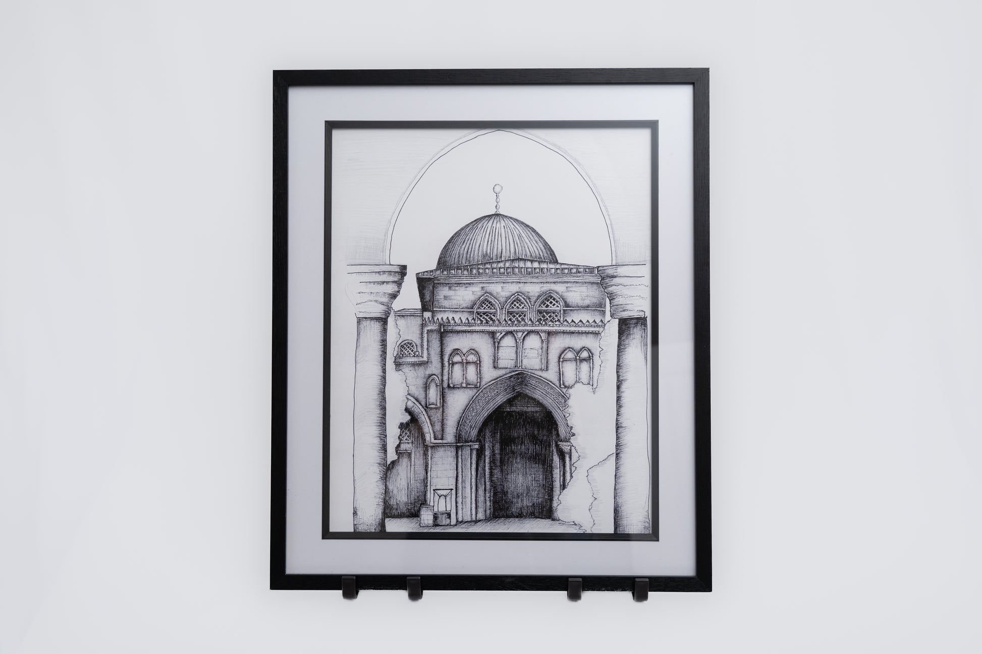Introducing our A4 Framed Sketch of the Al - Aqsa mosque Jerusalem, Palestine an exquisite piece of wall art designed to enhance the aesthetic of any room in your home. This minimal and modern style effortlessly complements various surroundings.