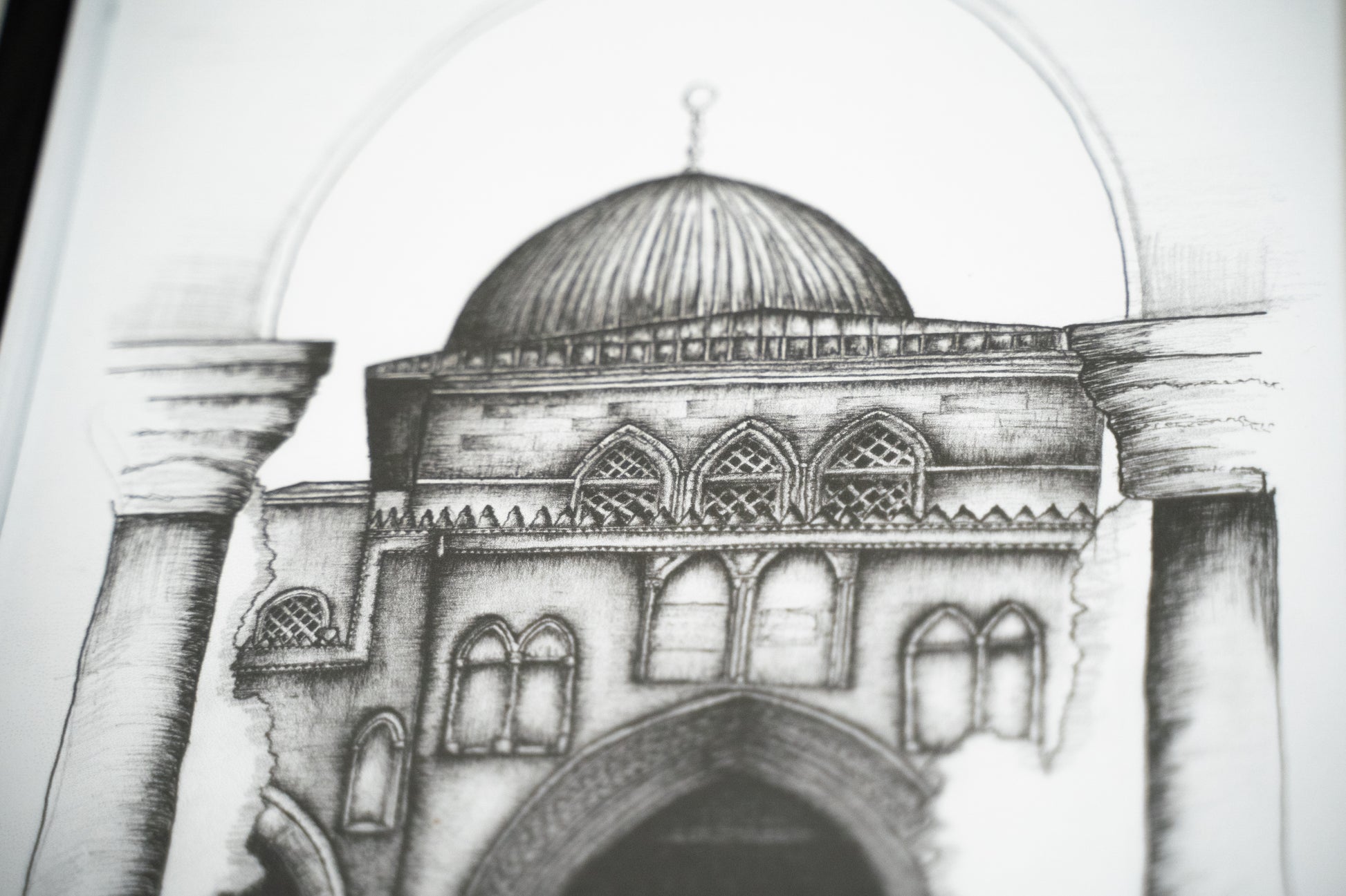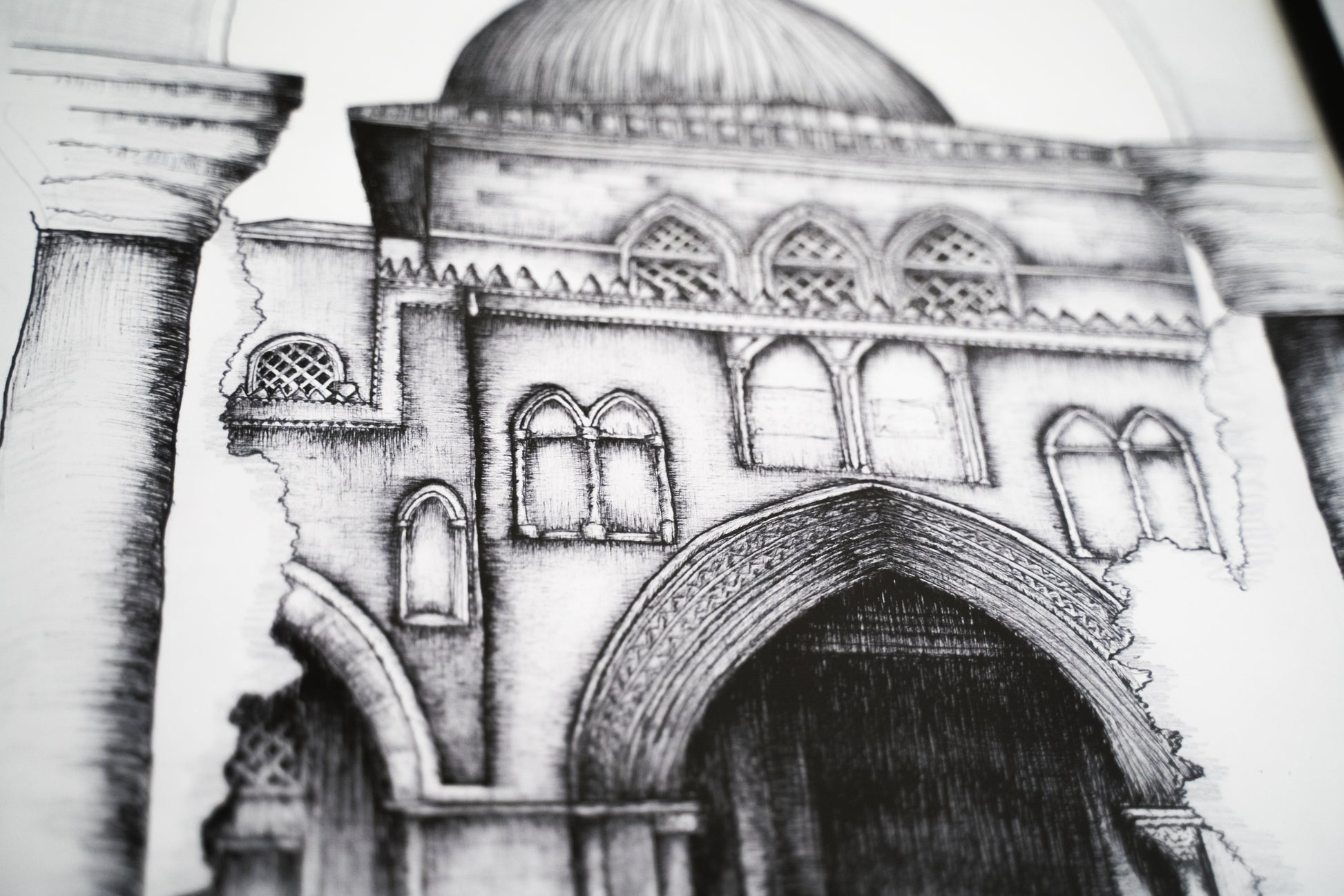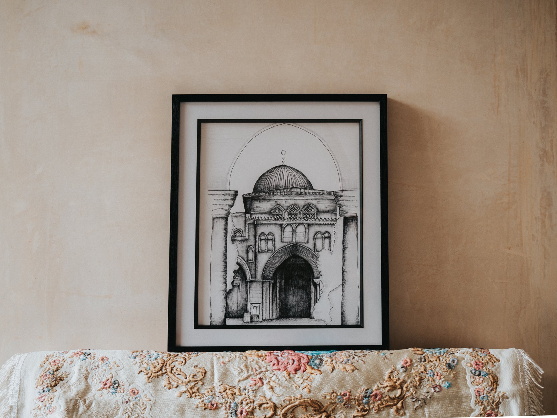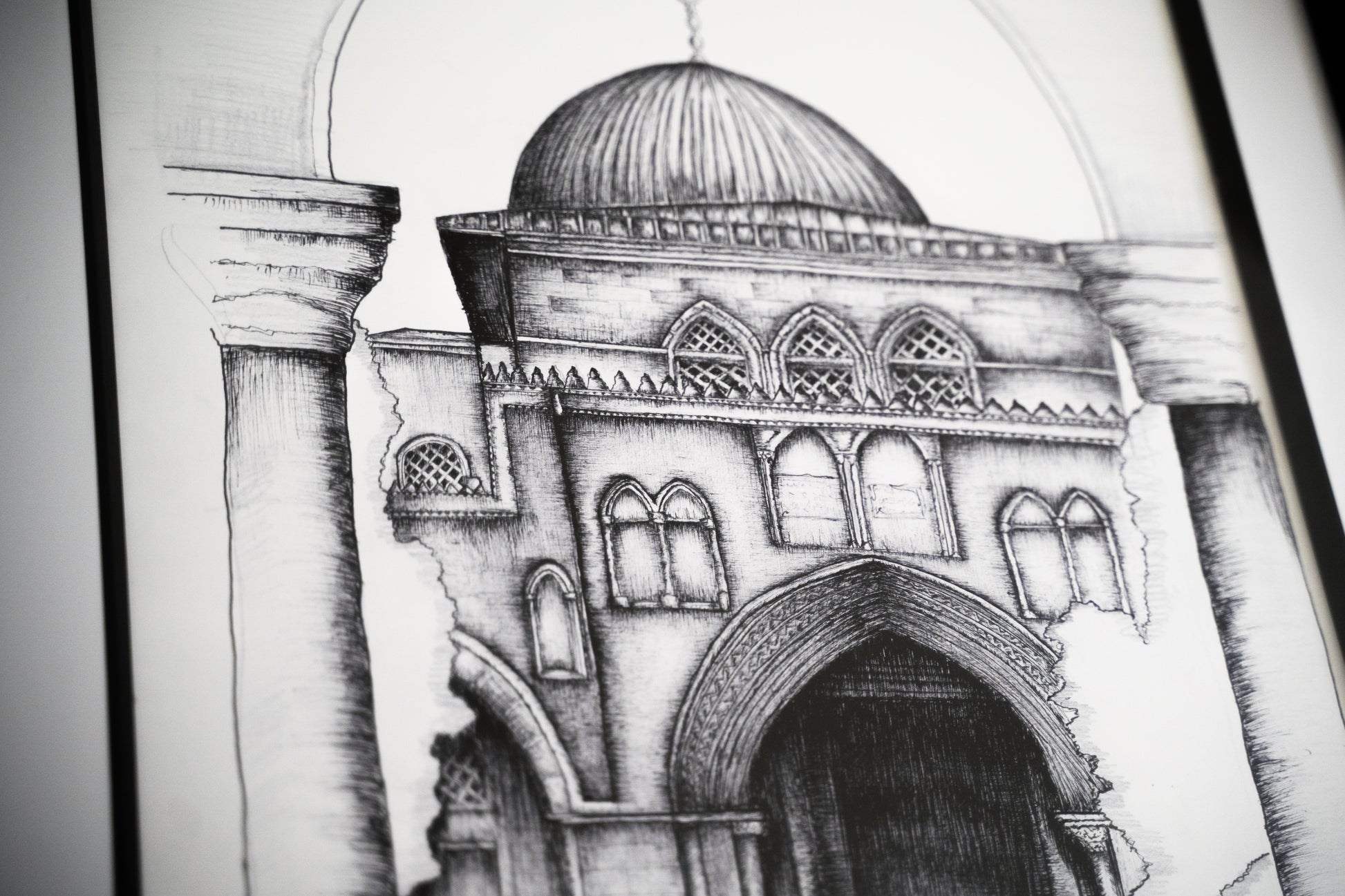Introducing our A4 Framed Sketch of the Al - Aqsa mosque Jerusalem, Palestine an exquisite piece of wall art designed to enhance the aesthetic of any room in your home. This minimal and modern style effortlessly complements various surroundings.
