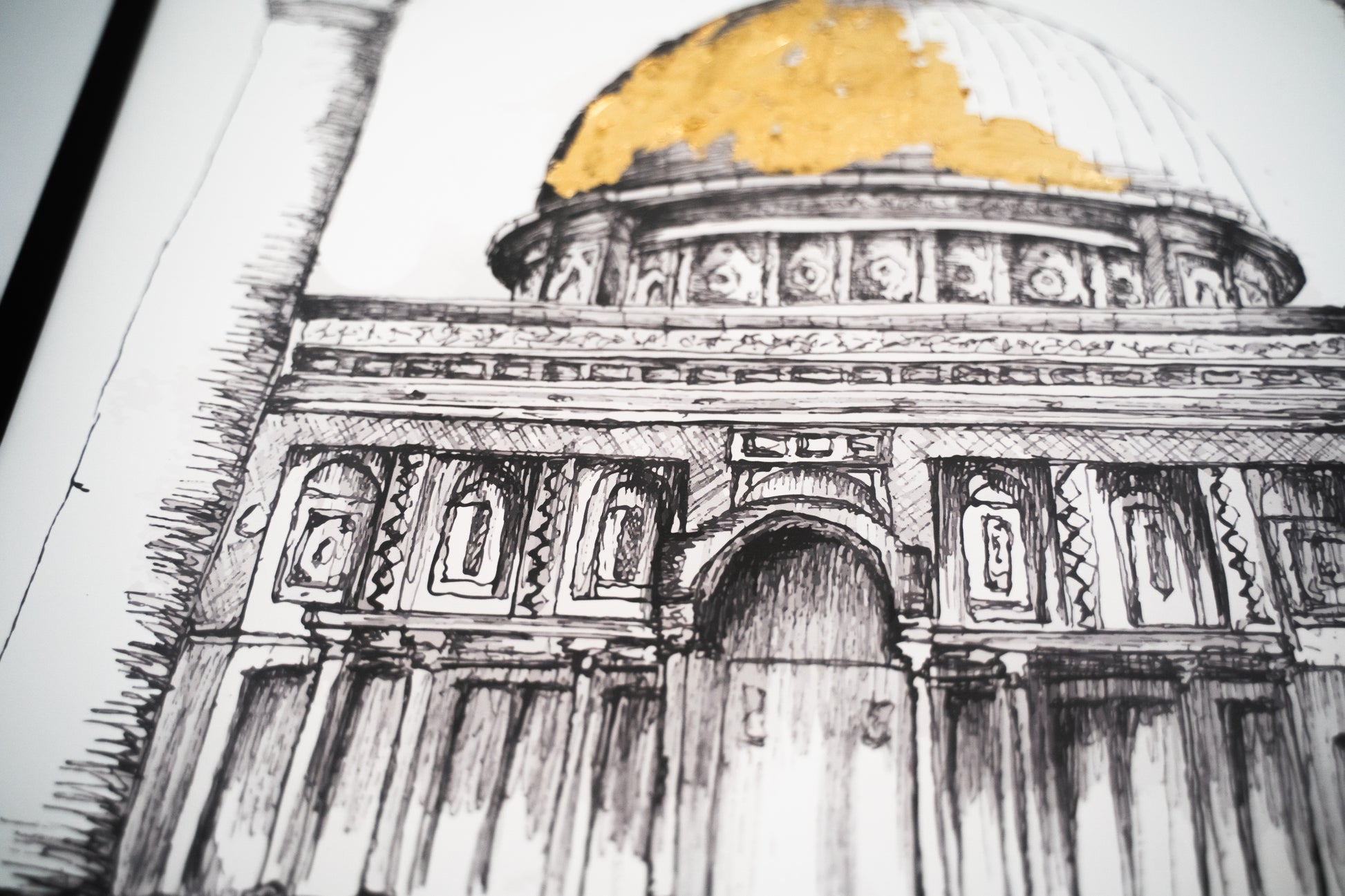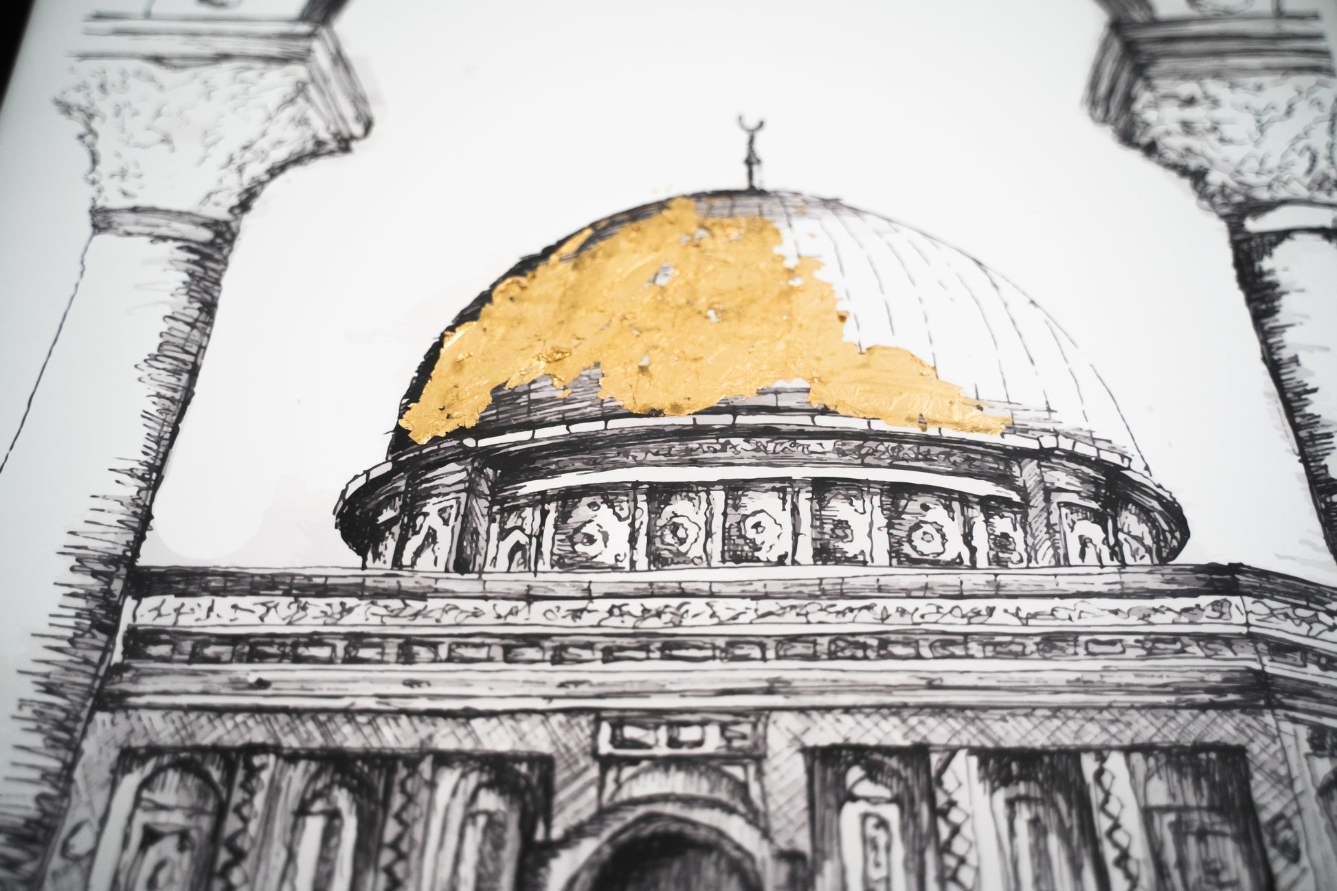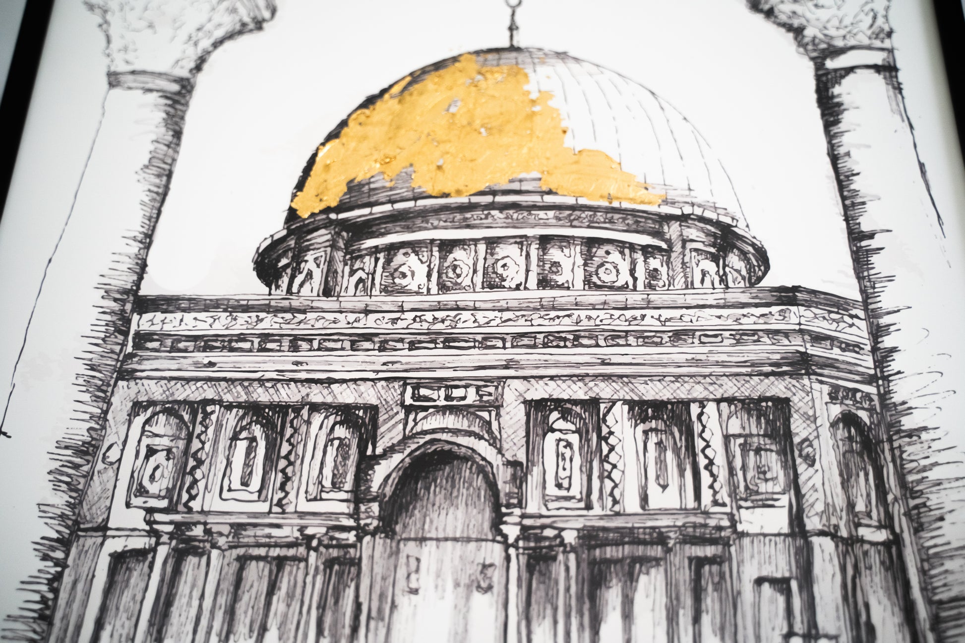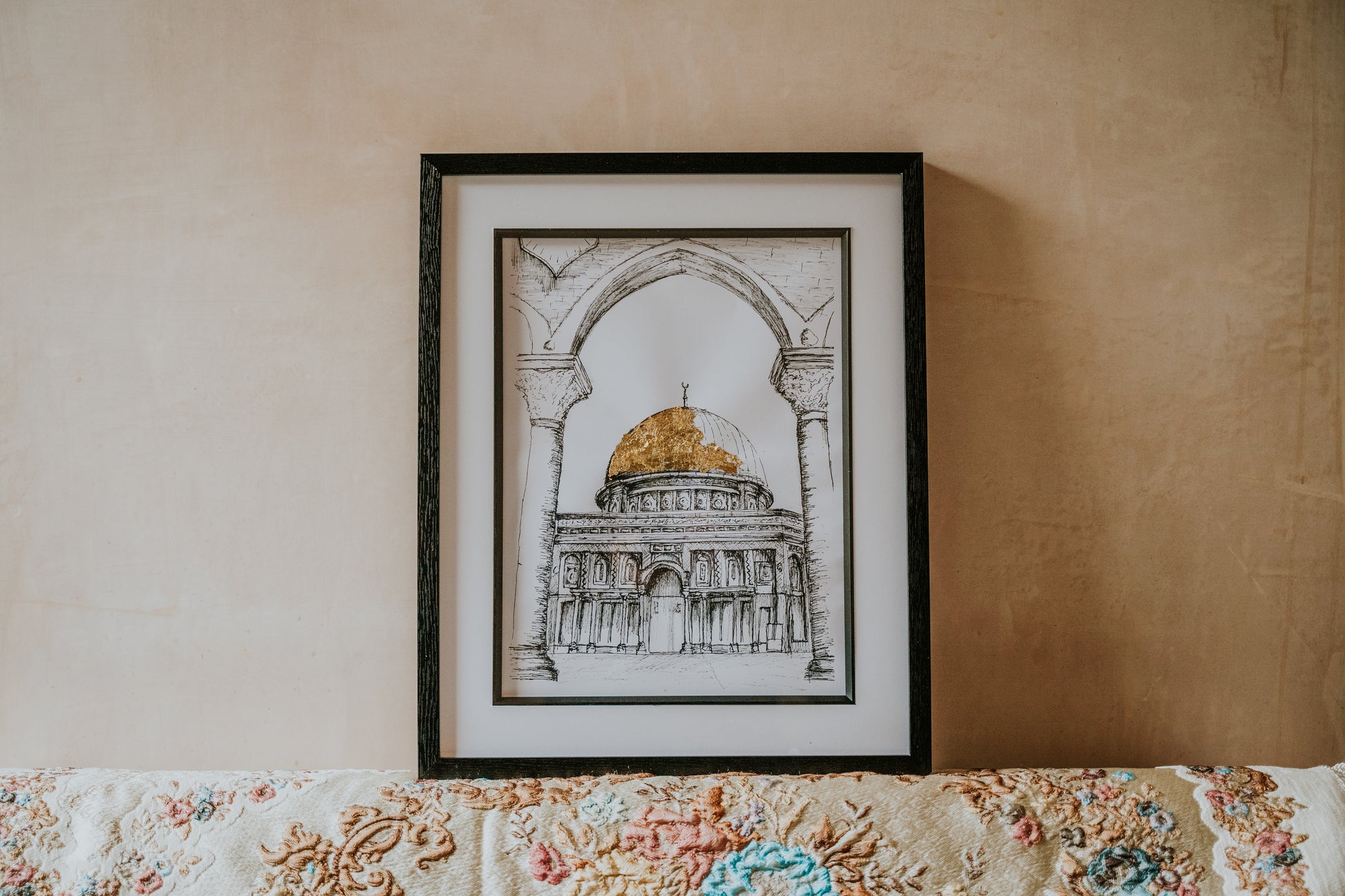 Introducing our A4 Framed Sketch of the Dome of the Rock in Jerusalem an exquisite piece of wall art designed to enhance the aesthetic of any room in your home. This minimal and modern style effortlessly complements various surroundings.